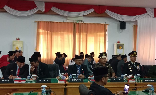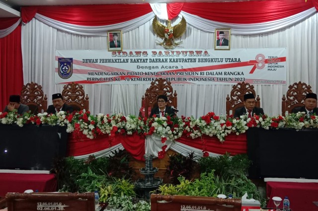 Rapat paripurna DPRD kabupaten Bengkulu Utara, di pimpin oleh ketua DPRD Sonti Bakara, S.H, di dampingi wakil ketua I Juhaili, S.IP, wakil ketua II Herliyanto, S.IP, diikuti anggota Dewan beserta istri, dihadiri Bupati Ir. H. Mian , Wakil Bupati Arie Septia Adinata, SE MAP, forum koordinasi pimpinan daerah, Sekda, Asisten, Staf Ahli, Kepala Bagian Setdakab BU, Sekwan, Kabag Sekretariat DPRD BU, Komisioner KPU, Ketua Bawaslu, Kepala instansi Vertikal, Pimpinan BUMD, Tokoh Masyarakat,Tokoh Agama Organisasi wanita, Organisasi Kemasyarakatan serta Undangan lainnya.