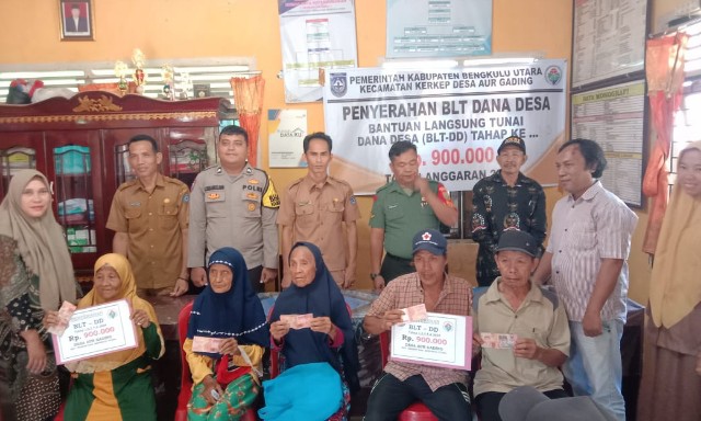 Kepala Desa Aur Gading dihadapan masyarakat Keluarga penerima manfaat dan tamu undangan mengatakan bahwa BLT-DD yang disalurkan merupakan sifatnya bantuan dari pemerintah untuk membantu masyarakat yang tergolong miskin exstrem.