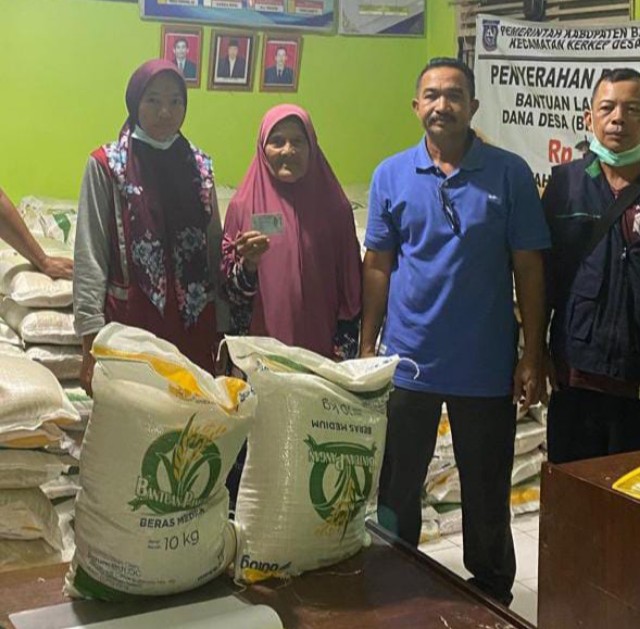 Penyaluran bantuan berlangsung di aula balai Desa setempat oleh kepala Desa dan perangkatnya