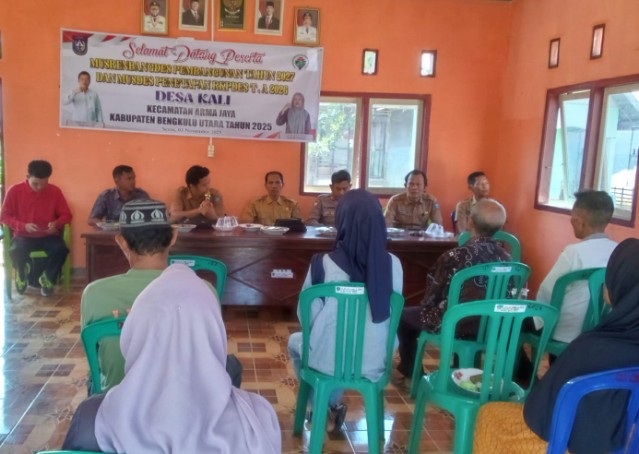 cakrawalabengkulu.com – Pemerintah Desa Kali l Kecamatan Arma Jaya, Bengkulu Utara, melaksanakan MUSRENBANGDES penyusunan rencana kerja pemerintah desa (RKPDesa) tahun anggaran 2027 dan musdes penetapan RKPDes rencana pembangunan tahun 2026, hari Senin (03/11/2025)