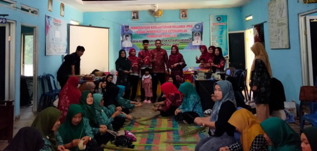 Kegiatan berlangsung di aula kantor Desa setempat dengan peserta pelatihan pengurus dan anggota ibu-ibu PKK Desa.