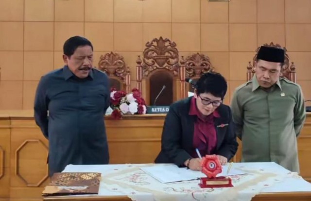 Kemudian Dilanjutkan dengan Penandatanganan Raperda menjadi Perda oleh Bupati BU, Ir.H.Mian dalam kesempatan tersebut beliau, Mengucapkan terimaksih kepada seluruh anggota Dewan dan Fraksi Dewan telah menjetujui Raperda Pajak Dan Retribusi Daerah menjadi Perda. Walaupun dalam pembahasannya selama ini bersama pihak – pihak yang berkopenten ada hal – hal yang alot tentu bertujuan menyempurnakan Raperda tersebut menjadi Perda.