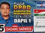 Mukomuko, cakrawalabengkulu.com – Dadang Sarwedi memantapkan diri maju di Pileg Kabupaten Mukomuko 2024 dari partai Demokrat dengan nomor urut 5. Dadang Sarwedi, yang biasa dipanggil Dedek Hela saat dikonfirmasi, Senin