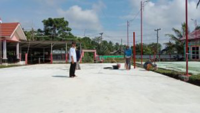 Lanjut kades, “pengerjaan pembangunan lapangan volly dan badminton  dengan sistim swakelola, artinya masyarakat selaku pekerja dan diawasi oleh masyarakat, dalam pengerjaannya murni menggunakan tenaga manusia tanpa menggunakan mesin molen untuk mengaduk semen, memang didalam teknis dan RAB tidak menggunakan molen” terang kades